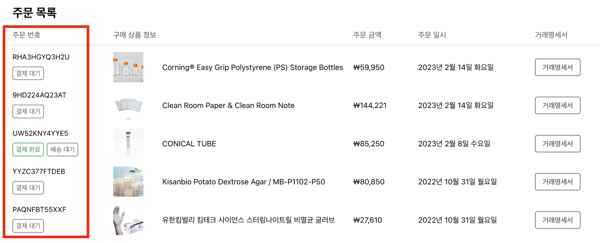 주문 목록에서 내가 원하는 주문목록을 클릭합니다.