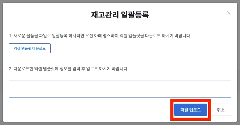 파일 업로드를 클릭한 후 저장된 엑셀파일을 선택합니다.