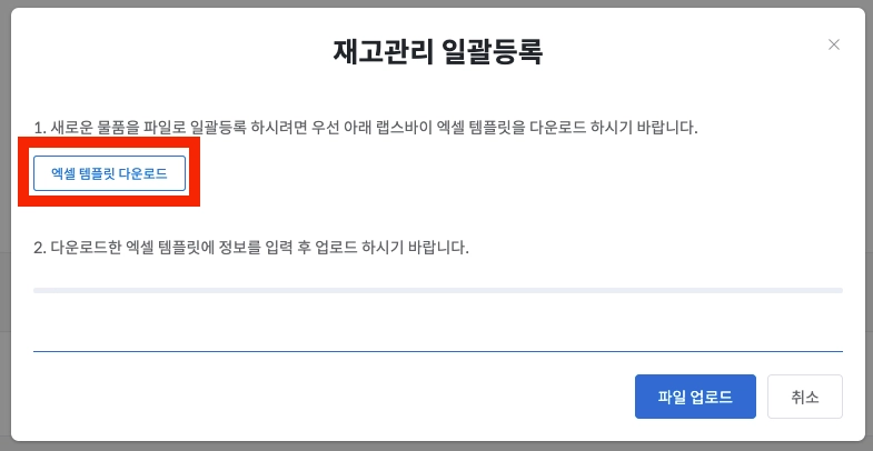 엑셀 템플릿 다운로드를 클릭해서 엑셀 파일을 다운로드합니다.