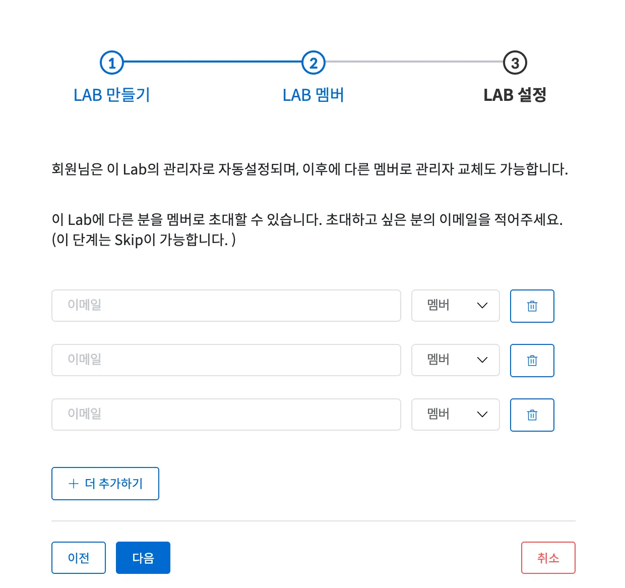 ⇒ 더 추가하기 버튼을 클릭하여 한번에 더 많은 인원을 추가할 수 있습니다.